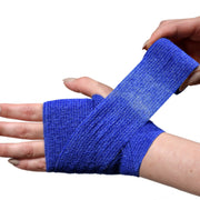 - Venda elástica con soporte poroso de poliéster y adhesivo cohesivo.