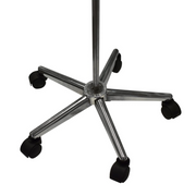 Con su estructura metálica cromada y una base de 50 cm de diámetro equipada con cinco ruedas plásticas que giran 360 grados, esta barra pedestal es fácilmente transportable y ofrece una movilidad excepcional. Incorpora cuatro ganchos de seguridad para sujetar soluciones o medicamentos de manera segura.