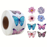 Rollo Sticker Mariposas y Flores x 500 Unidades