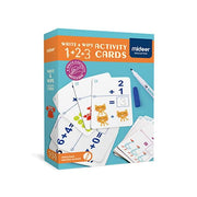 Tarjeta de actividad de escritura y limpieza ayuda con las matemáticas de los niños. Cada tarjeta tiene dos caras y se puede limpiar para repetir el ejercicio.